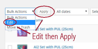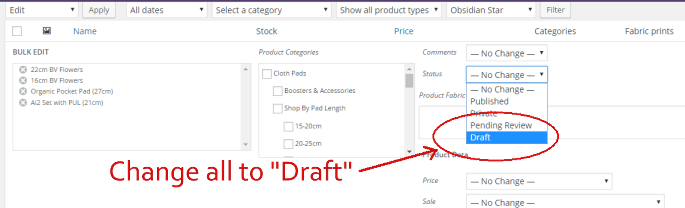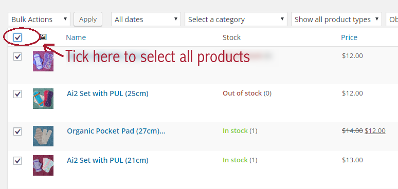 If you want to close your store for a break so that you don’t get any orders – you will need to change each product so that they don’t appear on the site.  You can do that easily using the bulk edit option in the “backend”
