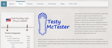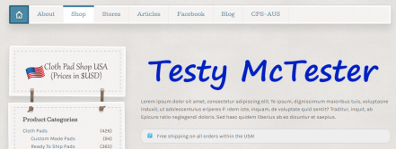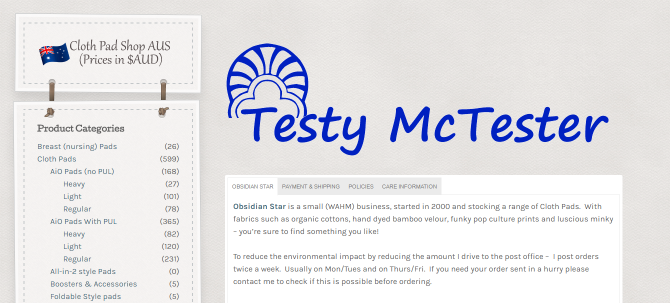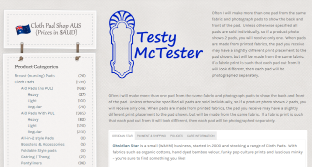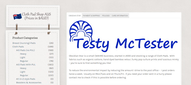 This option works best if you have a long banner that wouldn’t fit into a column. The “tab” shortcode allows you to display extra content in the tabs. Each tab acts like a little page, allowing you to put several pages worth of content in a small space. Useful for putting in your care instructions, more details on the fabrics you use, FAQs and other things you want customers to be able to have, but don’t want it cluttering up your listings or your shop page. The nice thing with the tabs is that if you keep the first tab with only a couple of lines of text, the page looks nice and neat and won’t be too far to scroll down to your products – but you can make the other tab pages longer so that you can fit more information into them.