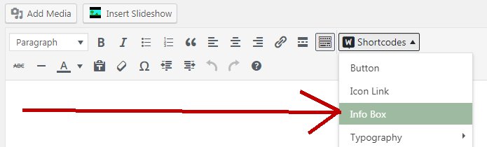 To do this, you need to type in the “shortcodes” option for the box. In this case I used an “info” Box so it has the little blue info icon