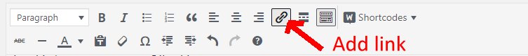Just highlight the writing you want to link, then click the link icon on the top of the editor