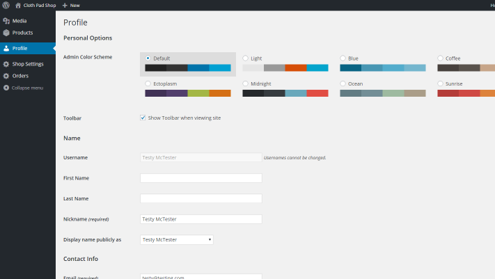 The “frontend” Vendor Dashboard is accessed via the “Vendors” link in the top menu of the website. The “backend” area is accessed by clicking the link in the yellow information bar on the bottom of your Vendor Dashboard, or going to www.clothpadshop.com/login