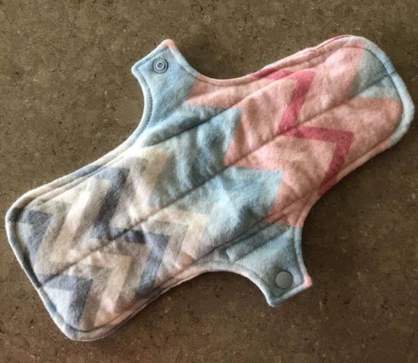 My pads are an AIO style with wings that fasten with plastic snaps to hold them in place. All except the liners have a hidden waterproof layer and an inner core of bamboo/organic cotton.